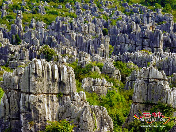 石林风景区为纯灰岩剑状喀斯特的典型集中区,岩石主体是呈浅灰色的纯灰岩及茅口组白云质灰岩,大石林、小石林、步哨山、李子园箐和万年灵芝五个片区内分布着剑状、柱状、塔状、蘑菇状、平衡状及不规则状的各种石峰。