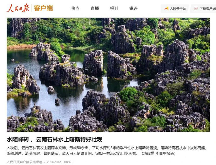 城市品牌营销出新出彩。全力主攻“国际知名旅游目的地”和“天然氧吧·旅居石林”两条赛道,组织举办“天然氧吧・旅居石林”产品发布会,立足石林自然风光、生态环境、康养资源、阿诗玛文化、传统民俗等资源禀赋开展全方位宣传报道,开设“旅居石林”“寻找新石林人”等专题专栏,制作短视频200余期、推文100余篇,设置#天然氧吧·旅居石林##秘境石林#等话题,参与人数达3000余万,“蓑衣山”“仙女湖”等地宣传报道被人民日报、新华社、央视《新闻联播》等央媒专题报道。创新宣传方式赋能城市营销,合作湖南卫视《乘风破浪2025》节目在石林录制,国内知名文化主播董宇辉携“与辉同行阅山河”团队走进石林景区开展深度直播,人民日报《跟着视界游中国》栏目制作播出《山林春色—云南石林》专题,向全网数千万观众全景呈现石林魅力。